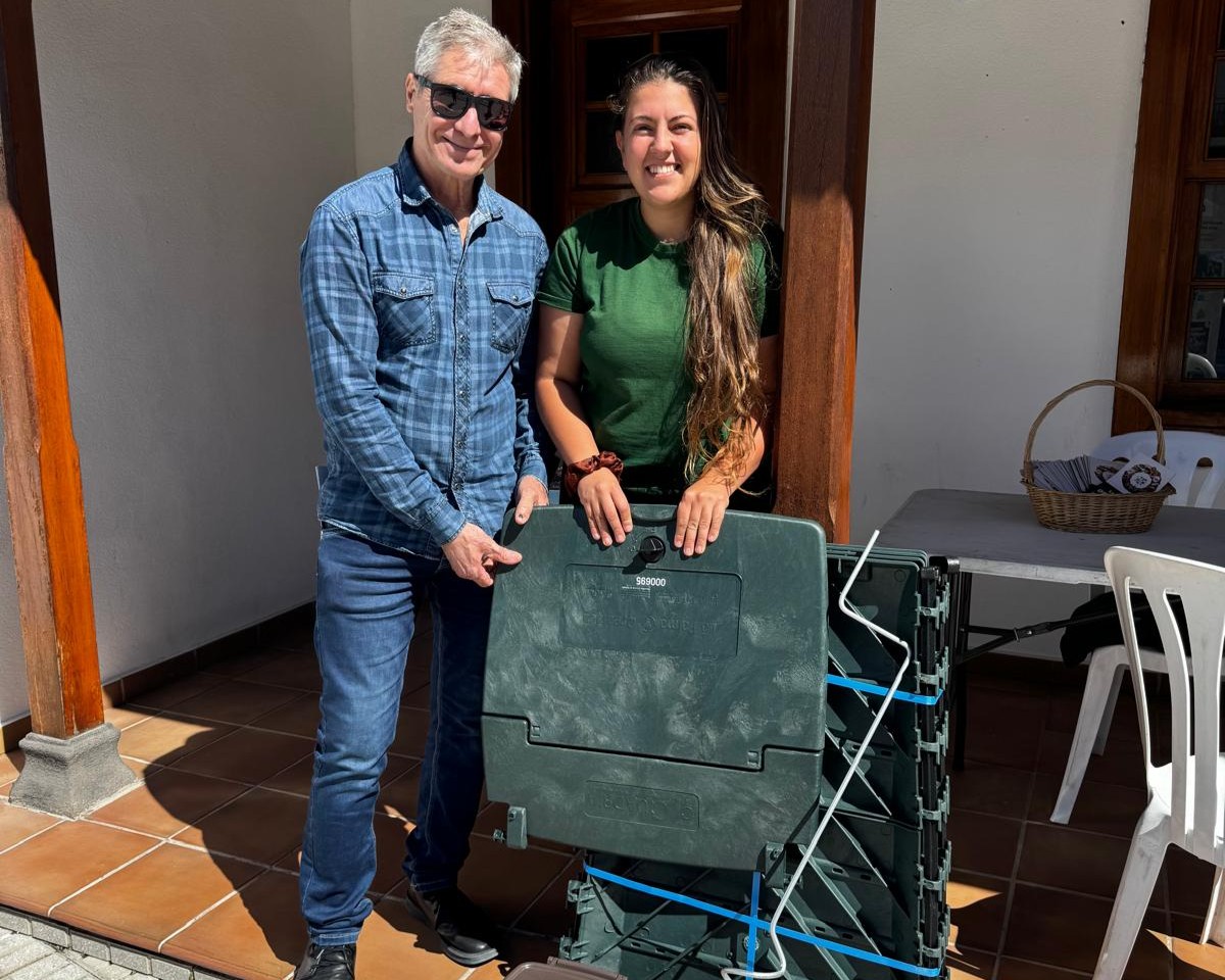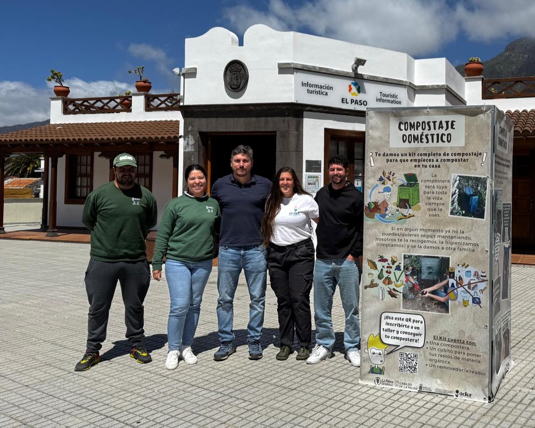 Además, dentro del marco de la gira, un técnico del proyecto se reunió con David González, concejal de Servicios, y Adrián Álvarez, técnico de Medioambiente del Ayuntamiento de El Paso, para fortalecer la apuesta del municipio por la gestión sostenible de los residuos. En este encuentro, se analizó la posibilidad de ampliar la participación de las familias en la modalidad de Compostaje Doméstico. También se abordó la necesidad de reactivar la Zona de Compostaje Comunitario existentes y la intención del ayuntamiento de ampliar su red con nuevas zonas estratégicas.