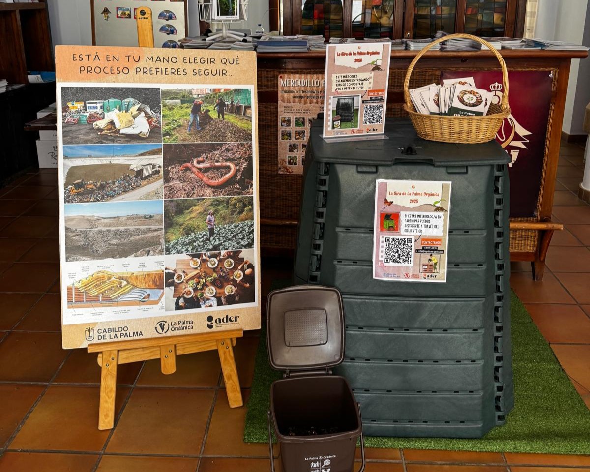 Del 24 al 31 de marzo, La Gira de La Palma Orgánica 2025 estuvo presente en el municipio de El Paso para seguir promoviendo una gestión más sostenible de los residuos orgánicos. Durante esos días, se instaló un punto informativo en la Oficina de Información Turística, donde los vecinos y vecinas han podido conocer más sobre el compostaje y resolver sus dudas sobre esta práctica.