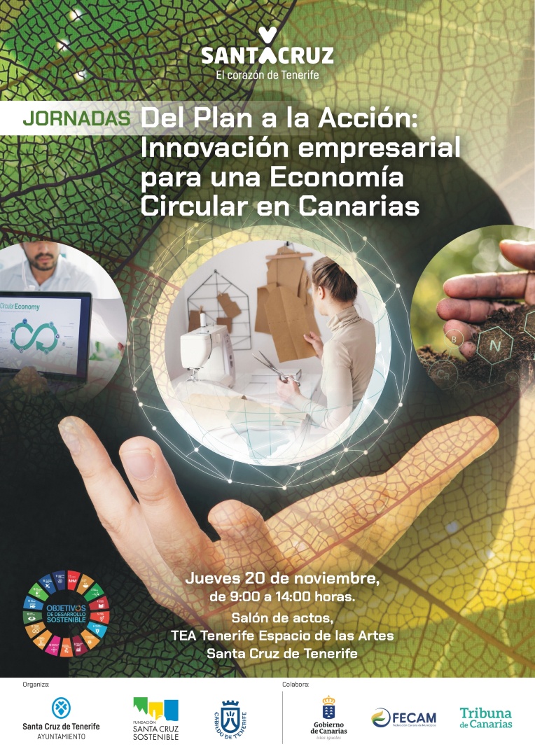 Jornadas “Del Plan a la Acción: Innovación empresarial para una Economía Circular en Canarias” Estas jornadas, organizadas por el Ayuntamiento de Santa Cruz de Tenerife , la Fundación Santa Cruz Sostenible y Cabildo de Tenerife , en colaboración con Presidencia del Gobierno de Canarias , Federación Canaria de Municipios y Tribuna de Canarias , te invitan a descubrir casos de éxito, proyectos emprendedores y nuevas oportunidades […]