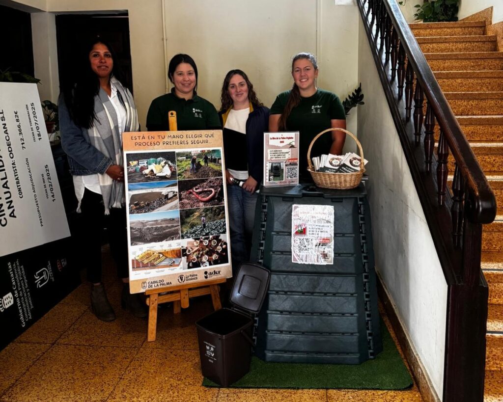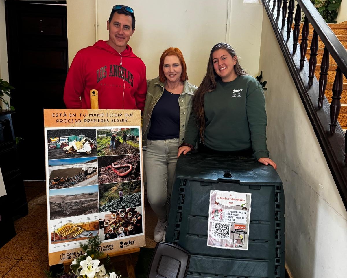 En el marco de la gira, se realizó una reunión con Estefani Michelle Márquez, primera teniente de alcaldesa de Puntagorda, y Nicole Cabrera, técnica Agente de Empleo y Desarrollo Local. En el encuentro se analizó la situación de las dos Zonas de Compostaje Comunitario (ZCC) del municipio y se valoró la posibilidad de sumar más familias a este sistema, resaltando el compromiso del Ayuntamiento de Puntagorda para fortalecer esta estrategia.
