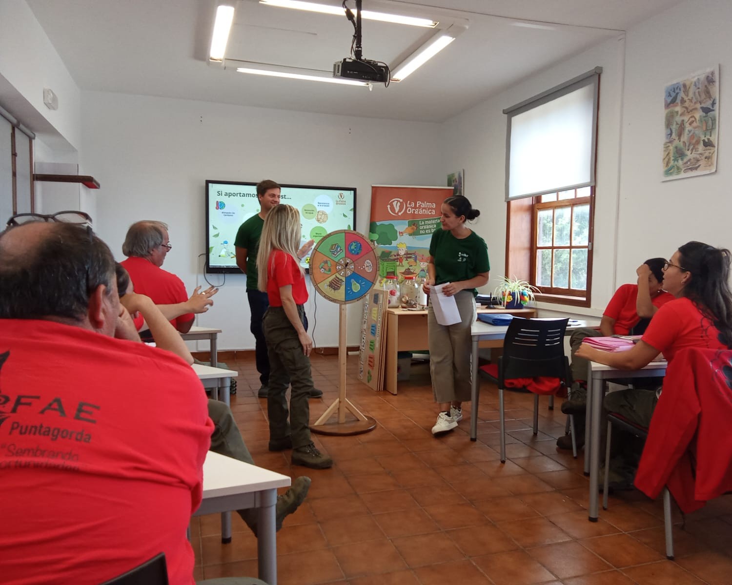 Además de la entrega de composteras, La Palma Orgánica está organizando talleres educativos con distintos colectivos de la isla, incluyendo asociaciones de vecinos, asociaciones juveniles, PFAEs y PFEs, cooperativas agrícolas y personal de extinción de incendios forestales. Ya se han realizado varios talleres con los PFAEs del Norte de la isla, y se están preparando nuevas sesiones en los municipios donde haya personas interesadas.