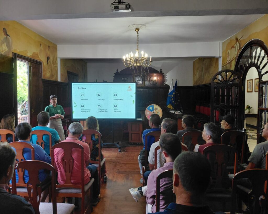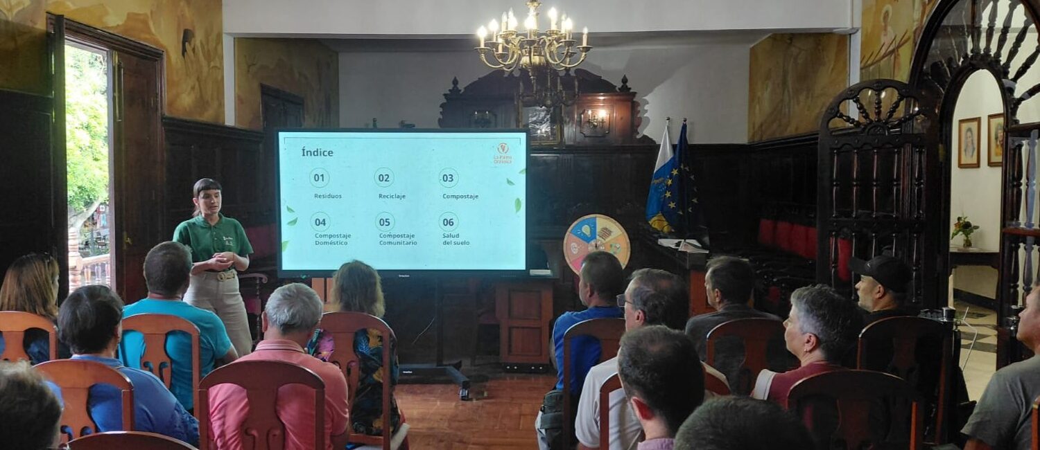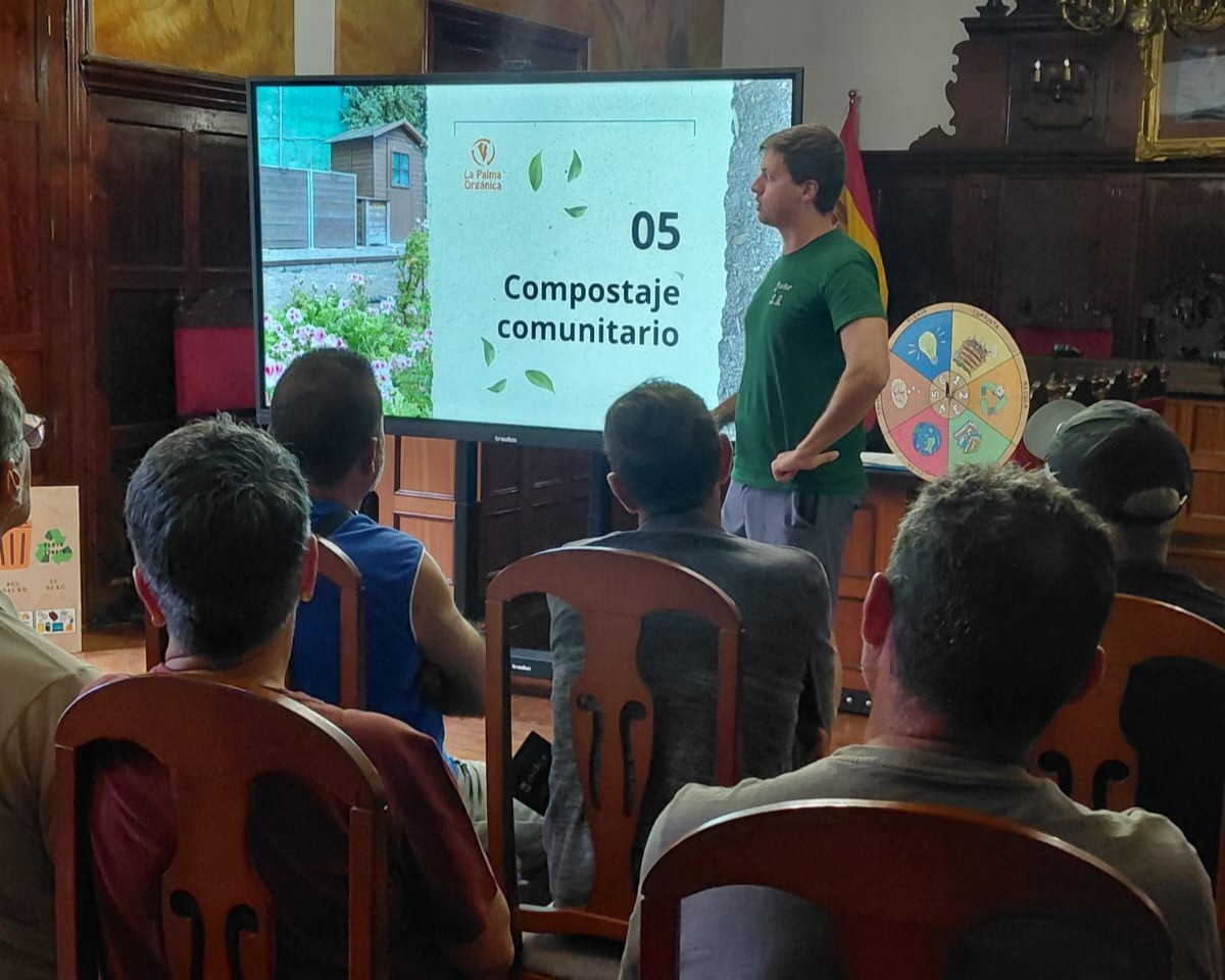 El pasado lunes, 10 de noviembre, La Palma Orgánica impartió un taller de compostaje en el Salón de Plenos del Ayuntamiento de Los Llanos de Aridane, una actividad dirigida a los vecinos y vecinas del municipio interesados en aprender a gestionar de forma responsable los residuos orgánicos que se generan en los hogares.