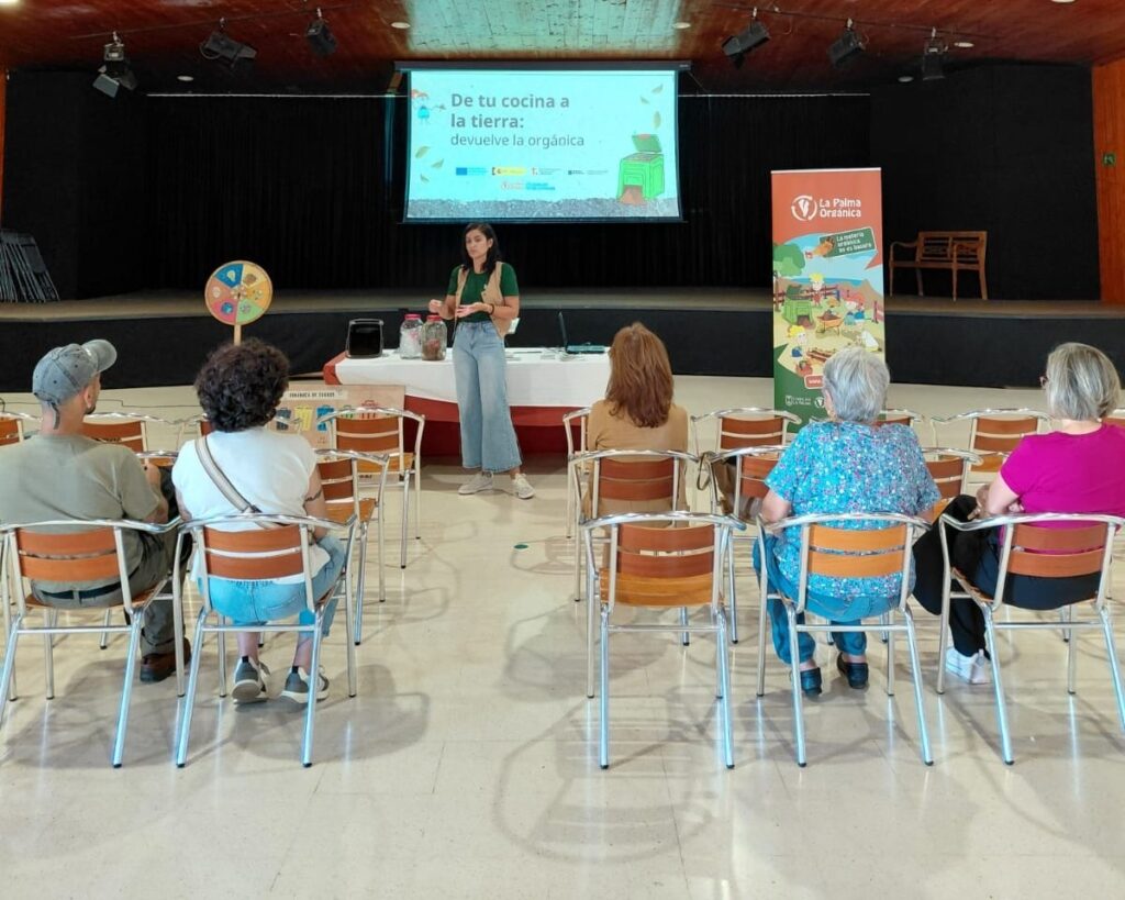 El pasado 28 de octubre el equipo de La Palma Orgánica llevó a cabo una actividad informativa en la Casa de la Cultura de Puntallana, donde las familias pudieron resolver sus dudas, profundizar en el compostaje doméstico y recibir composteras para comenzar a transformar sus residuos orgánicos.