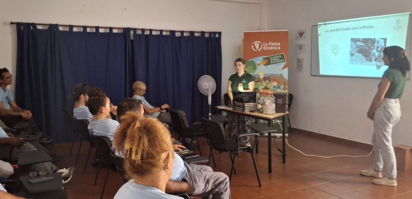 El pasado 17 de octubre, el equipo de La Palma Orgánica visitó el Programa de Formación en Alternancia con el Empleo (PFAE) ‘Santa Cruz de La Palma Siempre Verde’, en la Casa Cultural de Benahoare, en Santa Cruz de La Palma, para llevar a cabo una jornada formativa centrada en el compostaje comunitario y su importancia dentro de la correcta gestión de los residuos orgánicos en la isla.